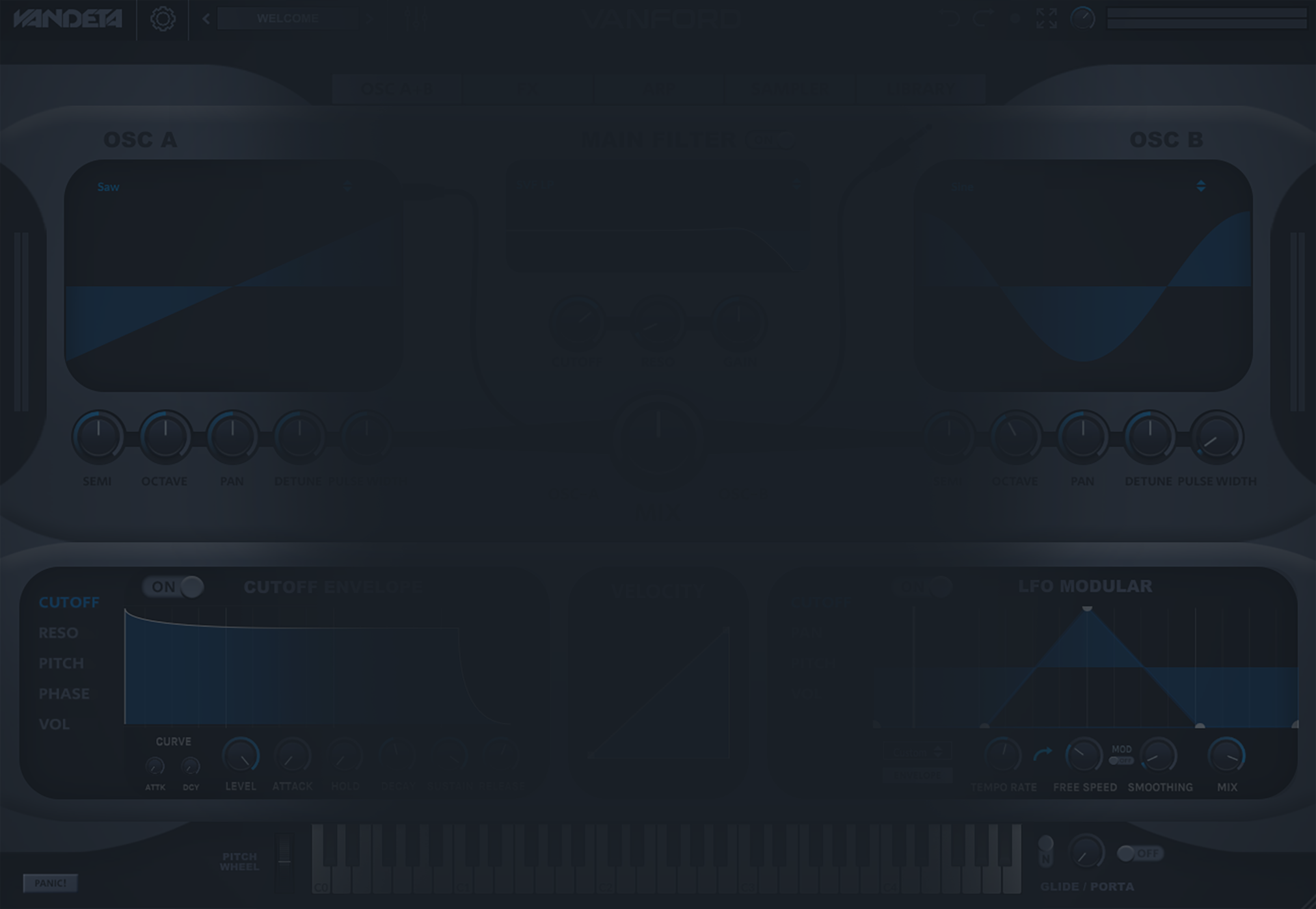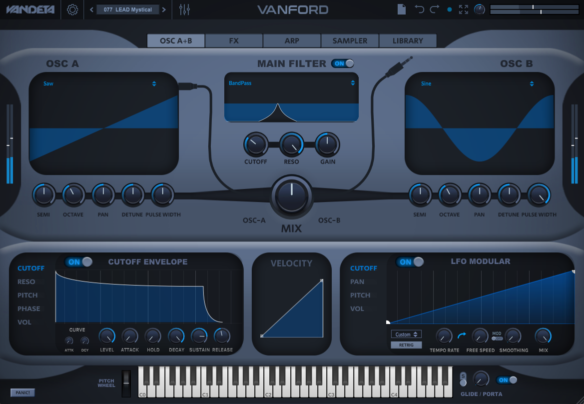- OSC A + OSC B: Two high-quality oscillators with dedicated Envelopes and LFO modulations.